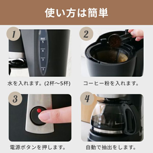 他の画像を見る 必要な分だけドリップ!ドリップコーヒーが手軽に飲めるコーヒーメーカー コーヒーメーカー 全自動 おしゃれ 保温 2〜5杯 お手入れ簡単 コーヒー ドリップ 一人用 二人用 ドリップ式 おすすめ 初心者 ひとり暮らし コーヒーマシンCMS5601 当店特別価格 ¥ 2,979 税込 在庫切れ 再入荷お知らせ お気に入りに登録する