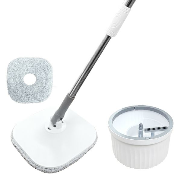 回転モップ 回転モップクリーナー モップ 2枚 モップ絞り機 手押し マイクロファイバー 脱水 洗浄 スピンモップ 床掃除 清掃 床拭き 雑巾掛け おしゃれ フローリング バケツ 清掃用品