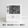 外部と内部の温度が一画面で見れます。最高・最低温度のメモリー付で「最高/最低」ボタンで確認できます。