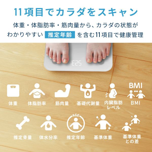 他の画像を見る たった10秒で11項目を測定!家族で記録も管理もかんたんに共有 体組成計 「Dr.SCANconnect」BS-405GY 当店特別価格 ¥ 3,979 税込 カートに入れる お気に入りに登録する