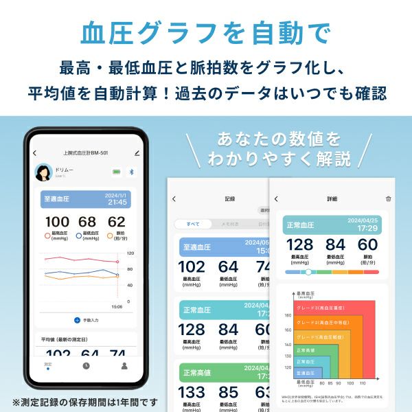 他の画像を見る スマートフォンでデータ管理!血圧グラフを自動作成 上腕式血圧計 【ドクタースキャンコネクト2】BM-503 当店特別価格 ¥ 6,480 税込 在庫切れ 再入荷お知らせ お気に入りに登録する