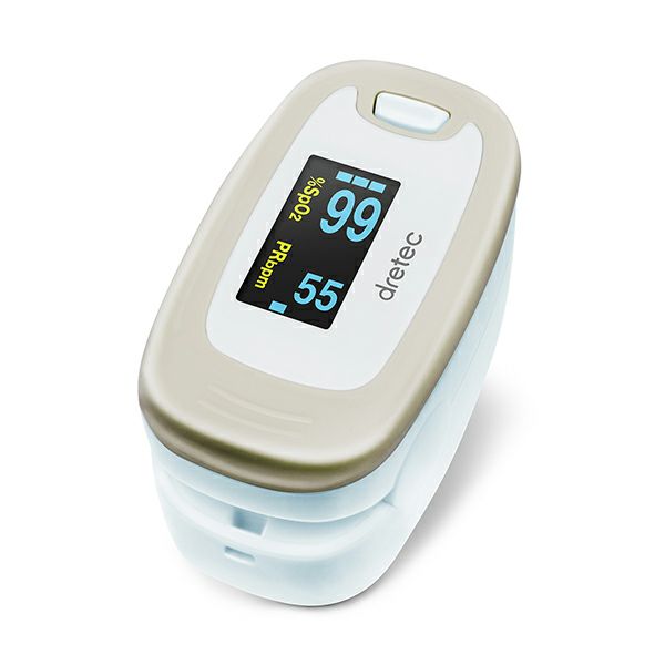 血液の中にどれだけ酸素が含まれているかの割合を測定するパルスオキシメータ。指にはさむだけで酸素飽和度(SpO2)と脈拍を簡単に測定することが可能です。