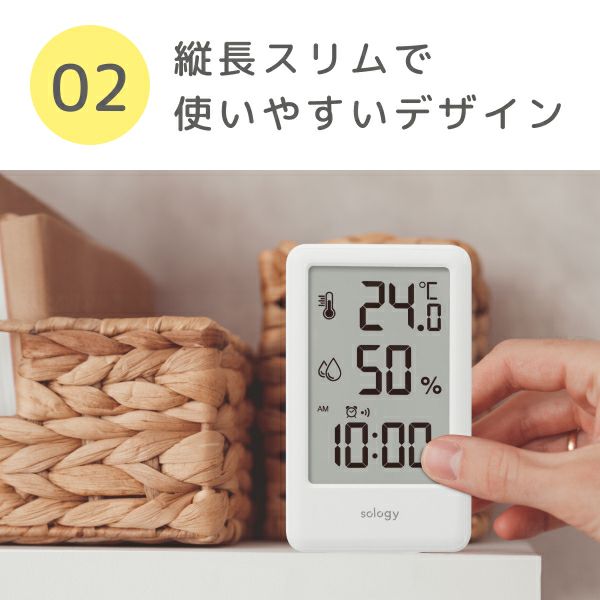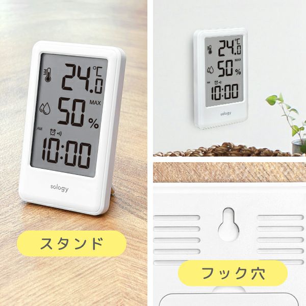 他の画像を見る シンプルな表示が見やすいデジタル温湿度計 sology デジタル温湿度計 温湿度計 デジタル おしゃれ 赤ちゃん 時計 温度 湿度 壁掛け スタンドTHY0103 当店特別価格 ¥ 1,380 税込 詳細を見る お気に入りに登録する